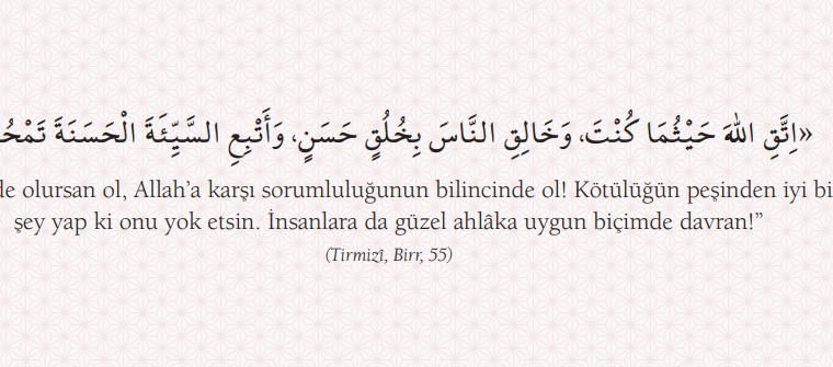 Gelin Gönüller Yapalım, Hadisler Gelin Gönüller Yapalım “Nerede olursan ol, Allah’a karşı sorumluluğunun bilincinde ol! Kötülüğün peşinden iyi bir şey yap ki onu yok etsin. İnsanlara da…