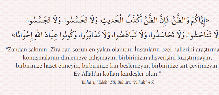 Gelin Gönüller Yapalım, Hadisler Gelin Gönüller Yapalım “Zandan sakının. Zira zan sözün en yalan olanıdır. İnsanların özel hallerini araştırmayın, konuşmalarını dinlemeye çalışmayın, birbirinizin alışverişini kızıştırmayın, birbirinize haset…