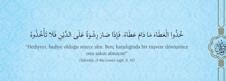 Hadisler, Helal Kazanç Helal Kazanç “Hediyeyi hediye olduğu sürece alın. Borç karşılığında rüşvete dönüşünce onu sakın almayın” (Taberani el-Mü cemü’s-sağir II 42)