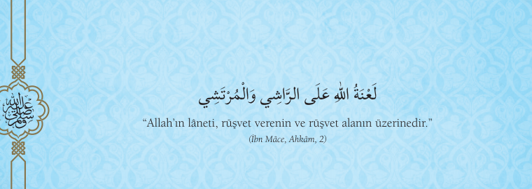 Hadisler, Helal Kazanç Helal Kazanç “Allah ın laneti rüşveti verenin ve rüşveti alanın üzerinedir” (İbn Mace Ahkam 2)