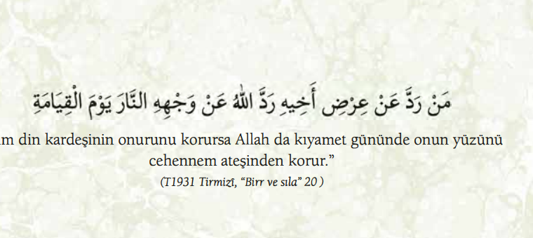 Hadisler, Kardeşlik Kardeşlik “Kim din kardeşinin onurunu korursa Allah da kıyamet gününde onun yüzünü cehennem ateşinden korur.” ([1931 Tirmizi, “Birr ve sıla” 20)