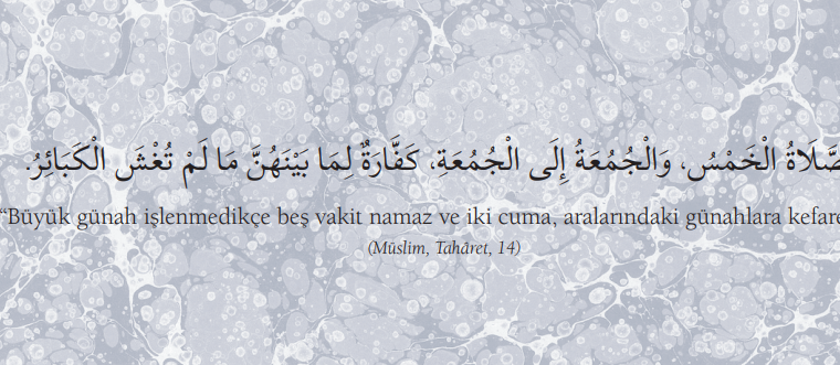 Hadisler, Namaz Namaz “Büyük günah işlenmedikçe beş vakit namaz ve iki cuma, aralarındaki günahlara kefarettir.” (Müslim, Tahâret, 14)