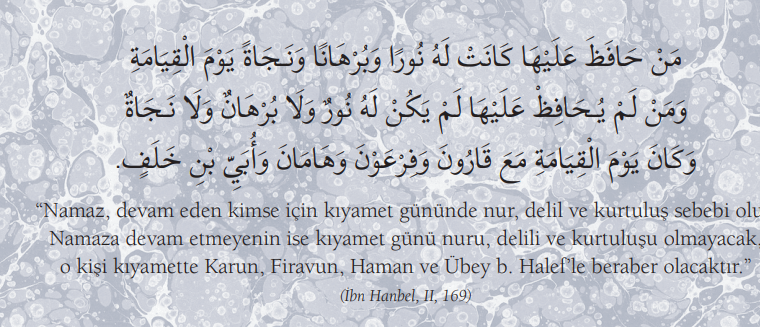 Hadisler, Namaz Namaz “Namaz, devam eden kimse için kıyamet gününde nur, delil ve kurtuluş sebebi olur. Namaza devam etmeyenin ise kıyamet günü nuru,…