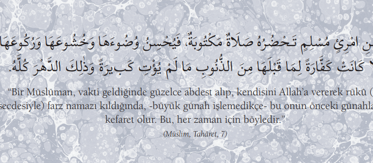 Hadisler, Namaz Namaz “Bir kimse abdest alır ve güzelce abdest almaya özen gösterir, ardından da namaz kılarsa, bu abdestle namaz arasında işlediği (günahlar)…