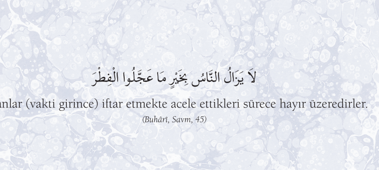 Hadisler, Ramazan Ramazan İnsanlar (vakti girince) iftar etmekte acele ettikleri sürece hayır üzeredirler. (Buhari Savm 45)