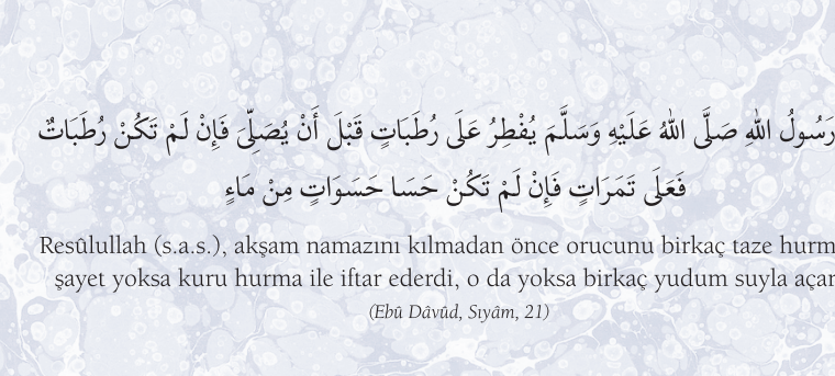Hadisler, Ramazan Ramazan Resulullah (s.a.s) akşam namazını kılmadan önce orucunu biraç taze hurma ile şayet yoksa kuru hurma ile iftar ederdi, o da…