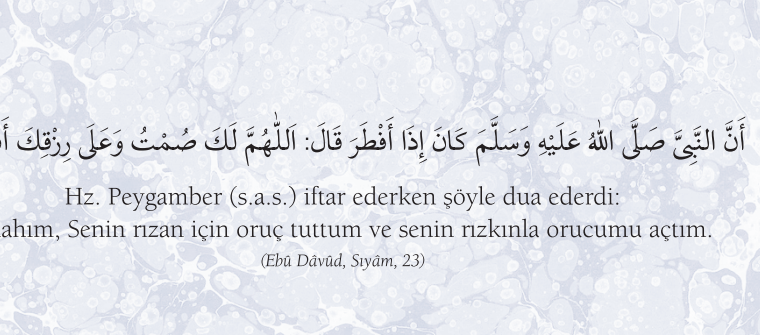 Hadisler, Ramazan Ramazan Hz. Peygamber (s.a.s) iftar ederken şöyle ederdi: Allahım, Senin rızan için oruç tuttum ve senin rızkınla orucumu açtım. (Ebu Davud…