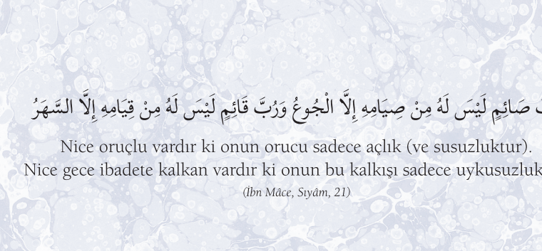 Hadisler, Ramazan Ramazan Nice oruçlu vardır ki onun orucu sadece açlık (ve susuzluktur). Nice gece ibadete kalkan vardır ki onun bu kalkışı sadece…