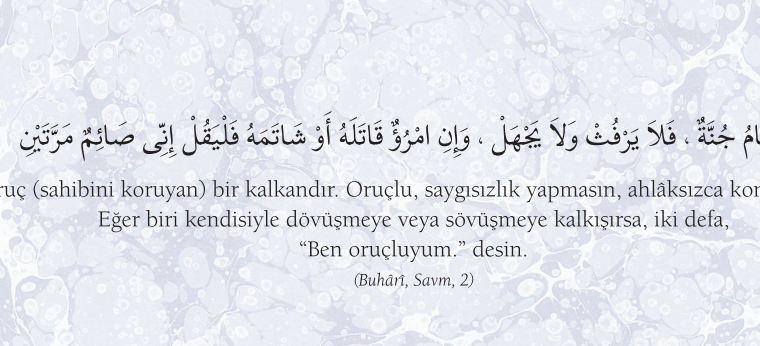 Hadisler, Ramazan Ramazan Oruç (sahibini koruyan) bir kalkandır. Oruçlu, saygısızlık yapmasın, ahlaksızca konuşmasın. Eğer biri kendisiyle dövüşmeye veya sövüşmeye kalkışırsa, iki defa, “Ben…