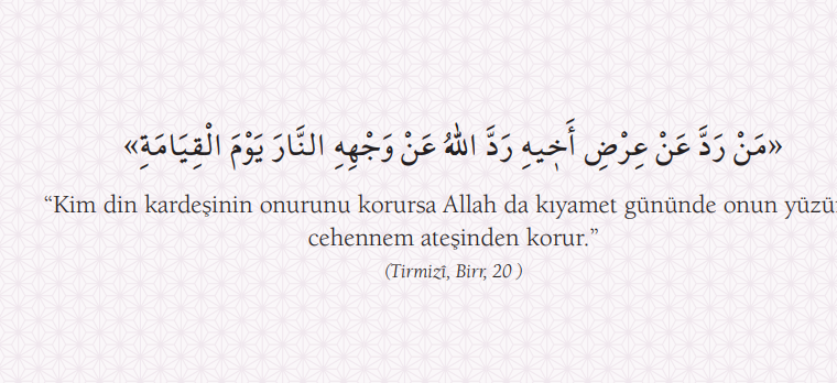Hadisler, Tevhid ve Vahdet Tevhid ve Vahdet “Kim din kardeşinin onurunu korursa Allah da kıyamet gününde onun yüzünü cehennem ateşinden korur.” (Tirmizî, Birr, 20 )