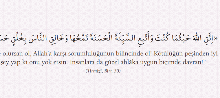 Hadisler, Tevhid ve Vahdet Tevhid ve Vahdet “Nerede olursan ol, Allah’a karşı sorumluluğunun bilincinde ol! Kötülüğün peşinden iyi bir şey yap ki onu yok etsin. İnsanlara da…